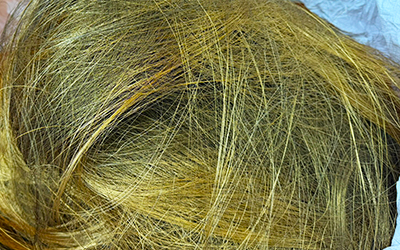 ◆放電加工の工程で発生する使用済みの真鍮製のワイヤーです。